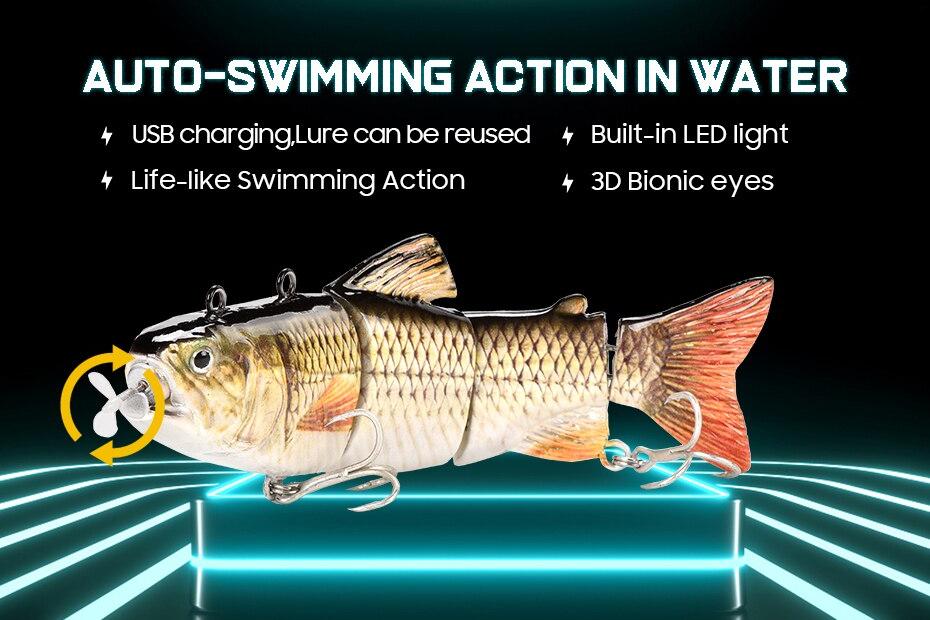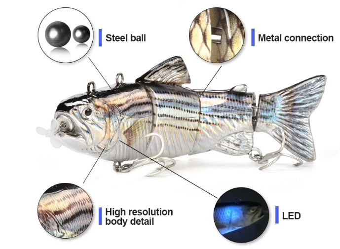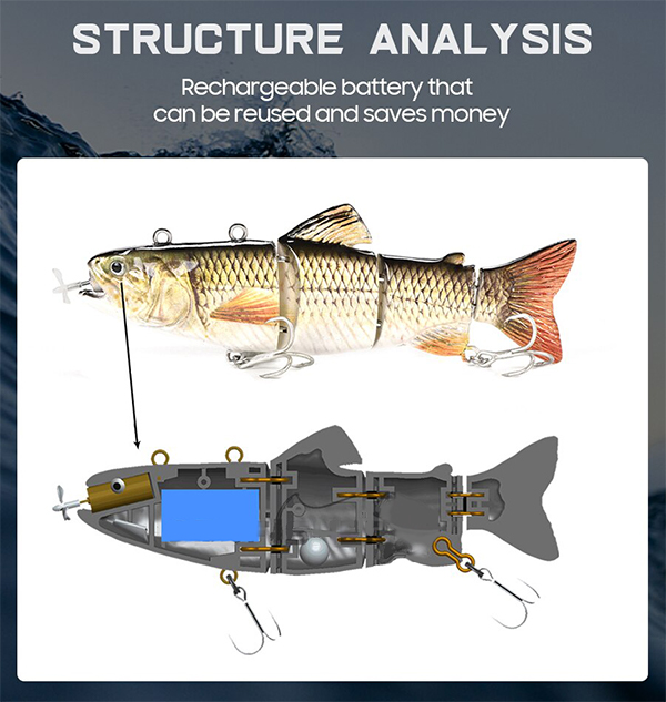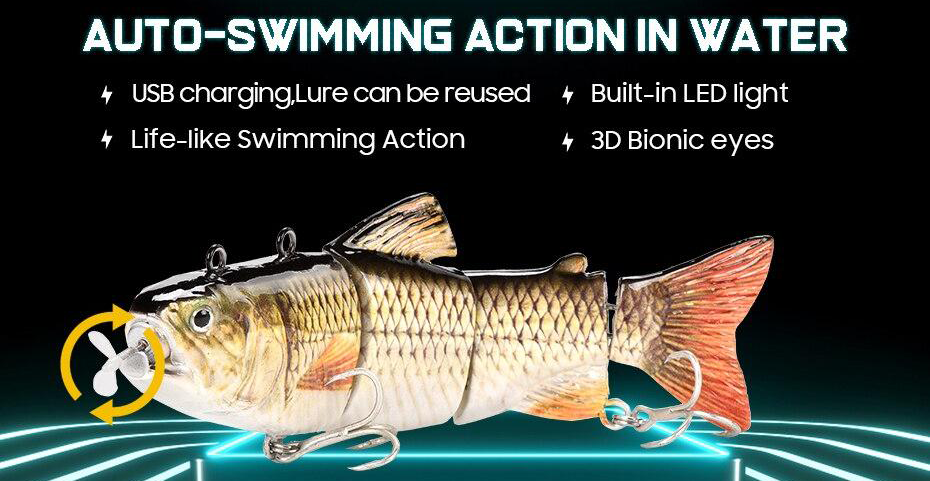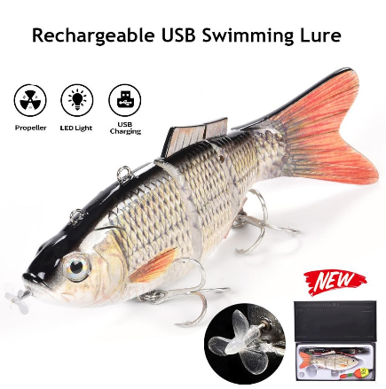 Rechargeable USB Swimming Lure will be one of your favorite fishing lure! Life-like swimming action attract your bait to take a bite!