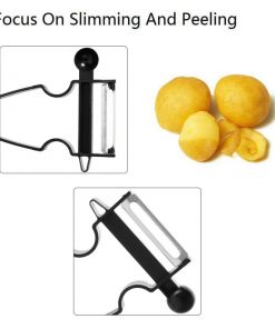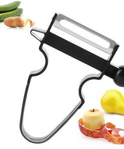 Feature dual ultra sharp surgical stainless steel swivel double-edged blade. Built-in potato eye remover and orange peeler. Dishwasher safe. Great little gadget for your loved ones 🙂